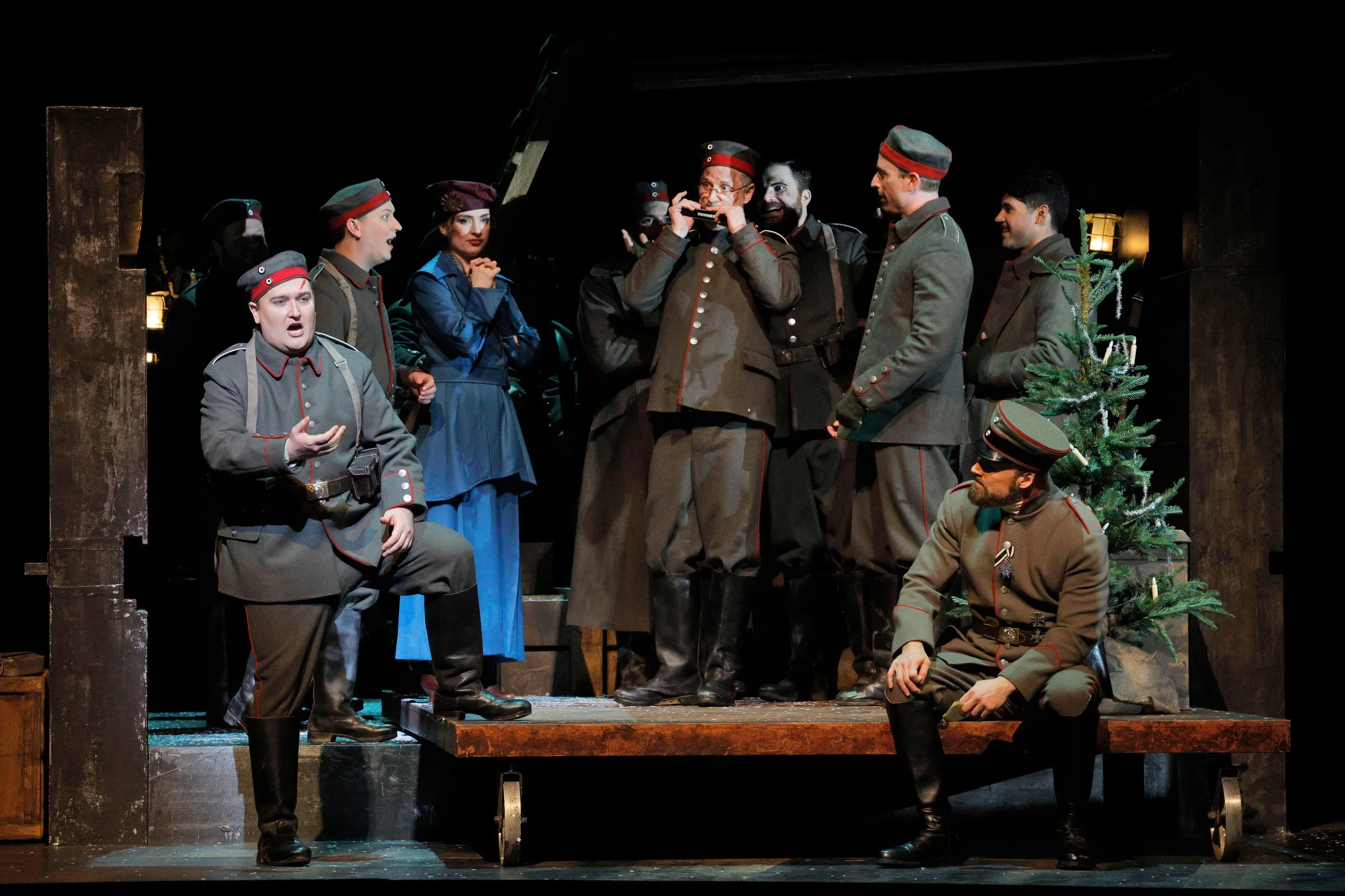 “Mykkanen, in his HGO debut as Nikolaus Sprink (a German opera singer drafted to fight), sang with a sweet and focused sound that was equally affecting whether expressing devastation over the war's toll or demonstrating his facility with late-eighteenth-century opera and Romantic art song.”